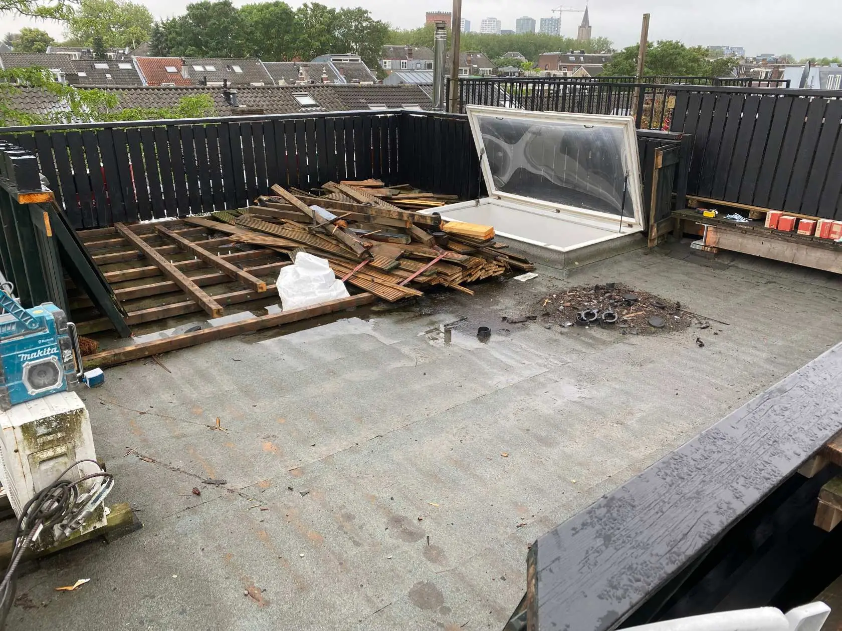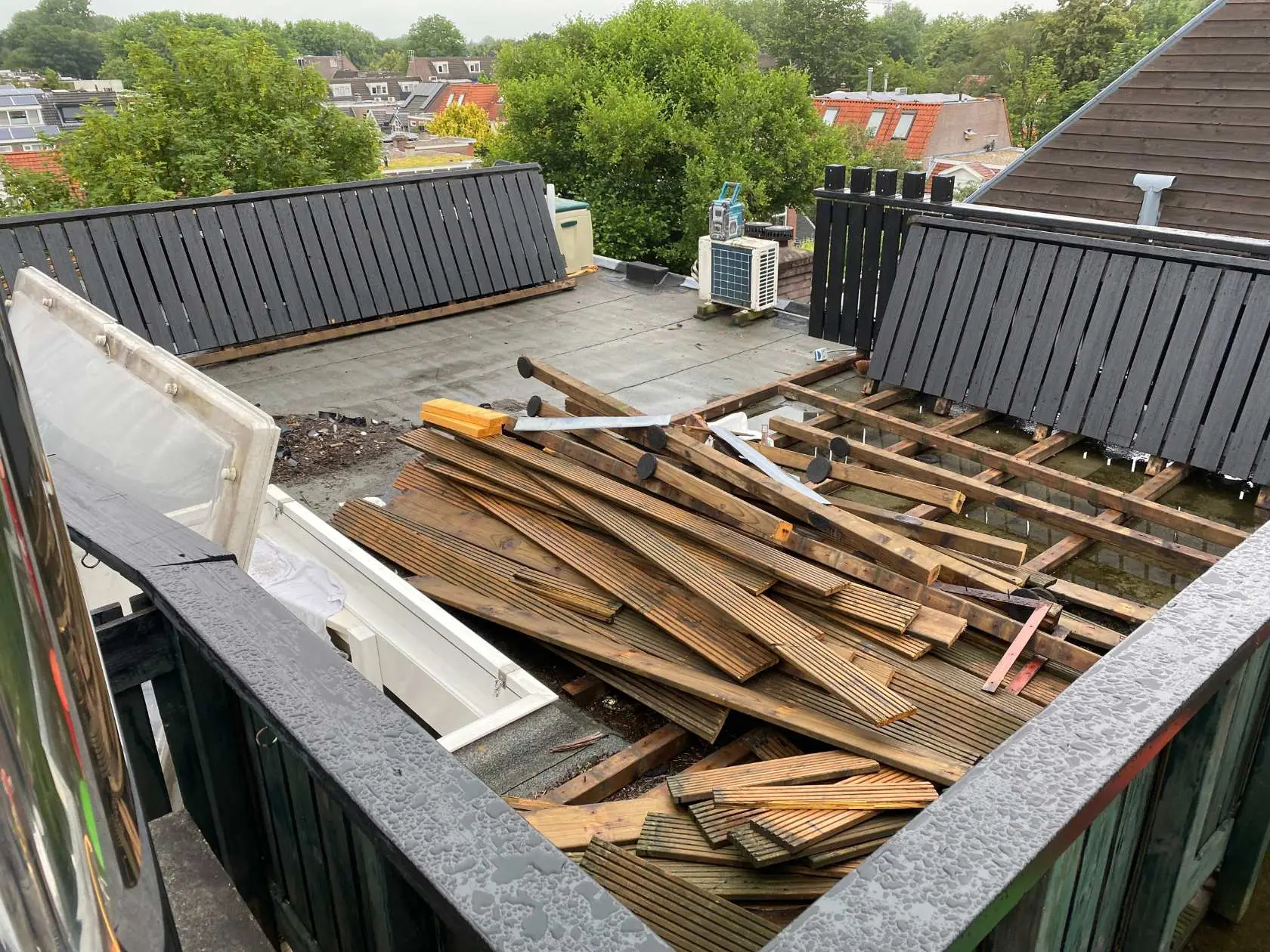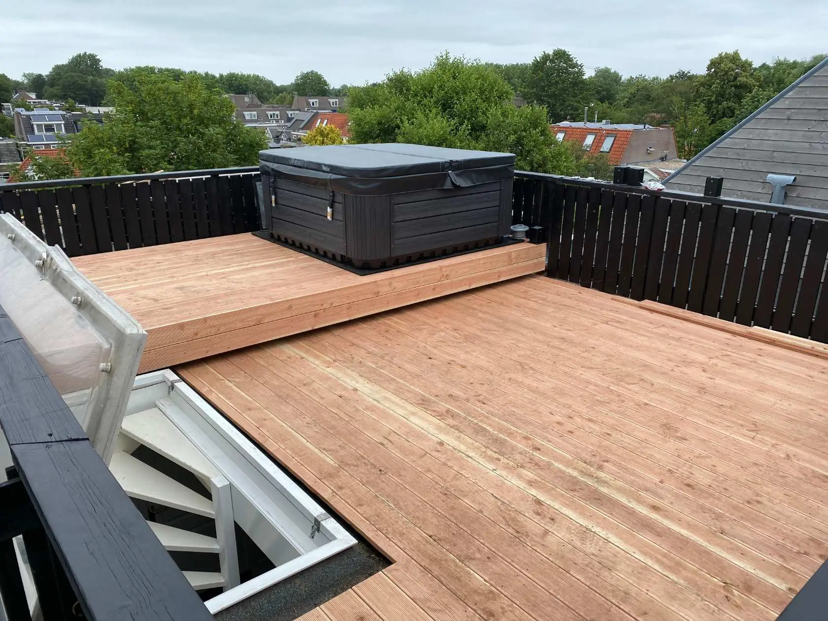In hartje Utrecht hebben we dit dakterras volledig verstevigd om het gewicht van een jacuzzi veilig te kunnen dragen. De bestaande houten constructie is verwijderd en vervangen door een nieuwe draagvloer met extra balklagen en verstevigingspunten.