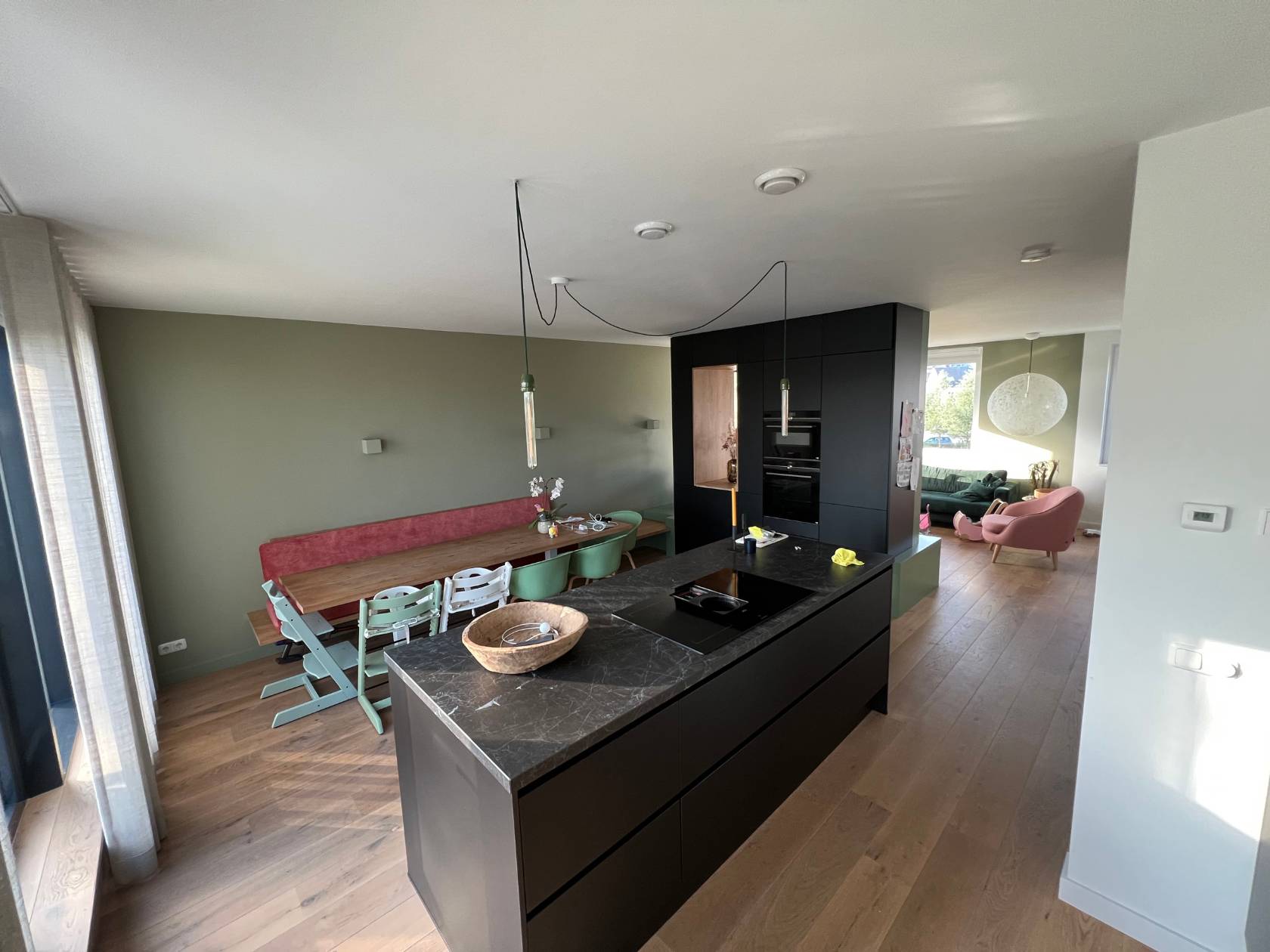 De woning kreeg een frisse indeling met een open leefruimte, maatwerk keukenkastjes, slimme bergruimte en speelse elementen voor jong en oud. Ook de sanitaire ruimtes zijn compleet vernieuwd met oog voor detail en afwerking.